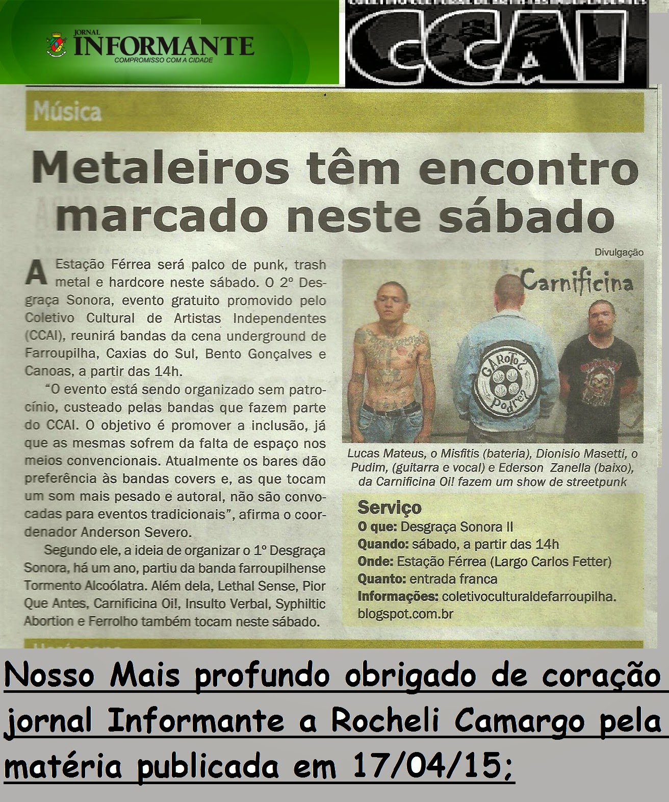 Emfim voltamos ao ponto, é como se o Jornal Informante compreende-se que somo jovens fodidos, trabalhadores "Work Class", que investimos nossas economias em, Caixas pra guitarra, Cubos para Baixo, Microfones, Peles, pratos e outras peças para bateria; Claro em cerveja também! E investimos uma boa parcela do nosso tempo compondo letras e melodias para sermos ouvidos, gastamos nossas economias em estúdios da cidade, compramos nossos instrumentos nas lojas da cidade. Mas somos chamados para tocarmos em outras cidades é como se fossemos fantasmas invisíveis.